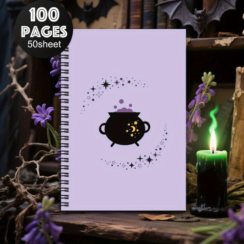 1pc Witchy Spiral Notebook - Gothic Witchcraft Journal with Spiral Binding, Pastel Purple Cover & Witch Hat Design - Elegant Witchy Planner for Women, Witches, for Halloween, Birthday Gifts - Astrology, Travel, Office, Medita