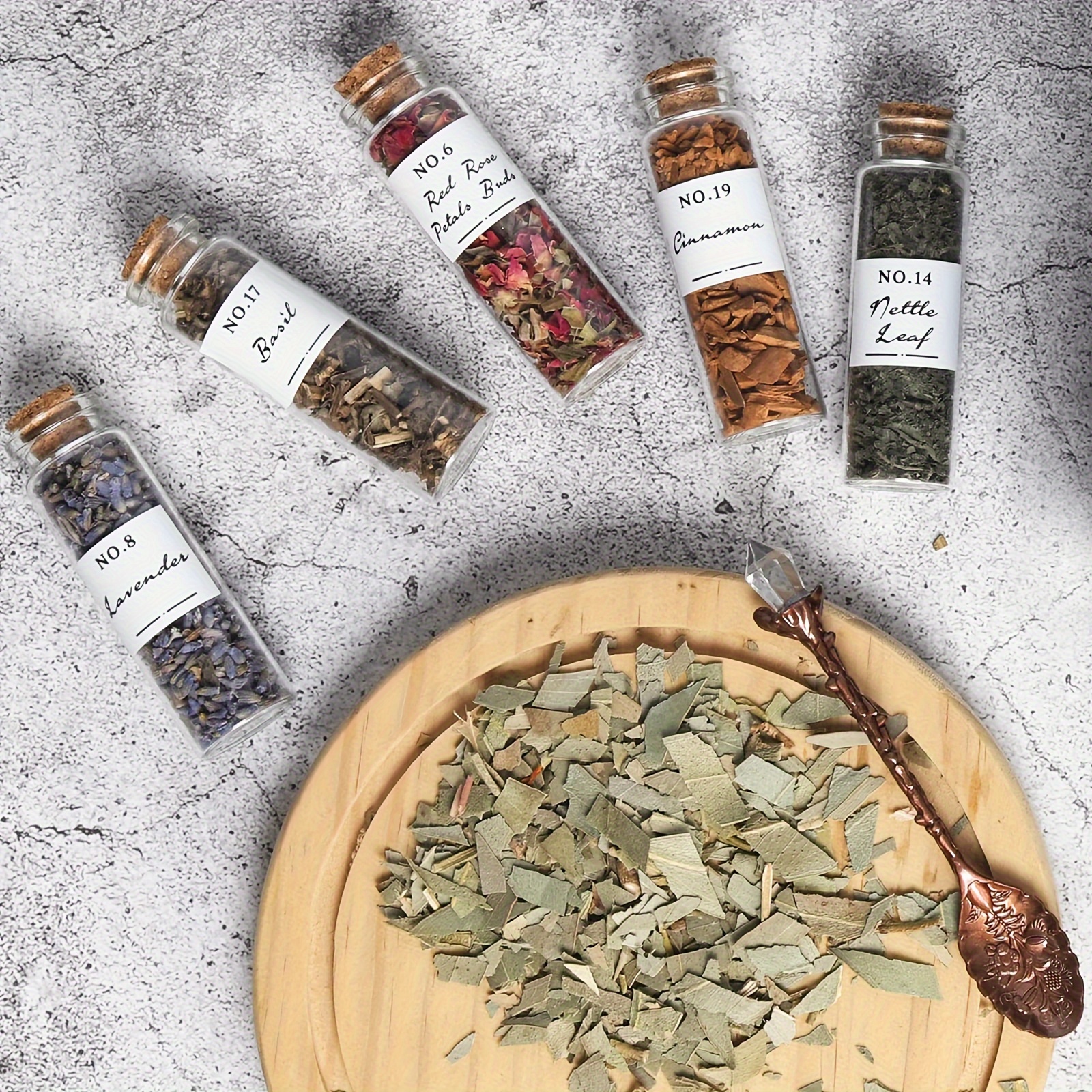 24pcs Witchcraft Supplies Herbs And Flowers Kit - Dried Herbs Set with 1pc Crystals Spoon - Witchy Beginners Experienced Dried Herbs Box Gift for Spells Rituals Altar Decor-weddingDay Gift And Valentine's Day Closeout Altar S