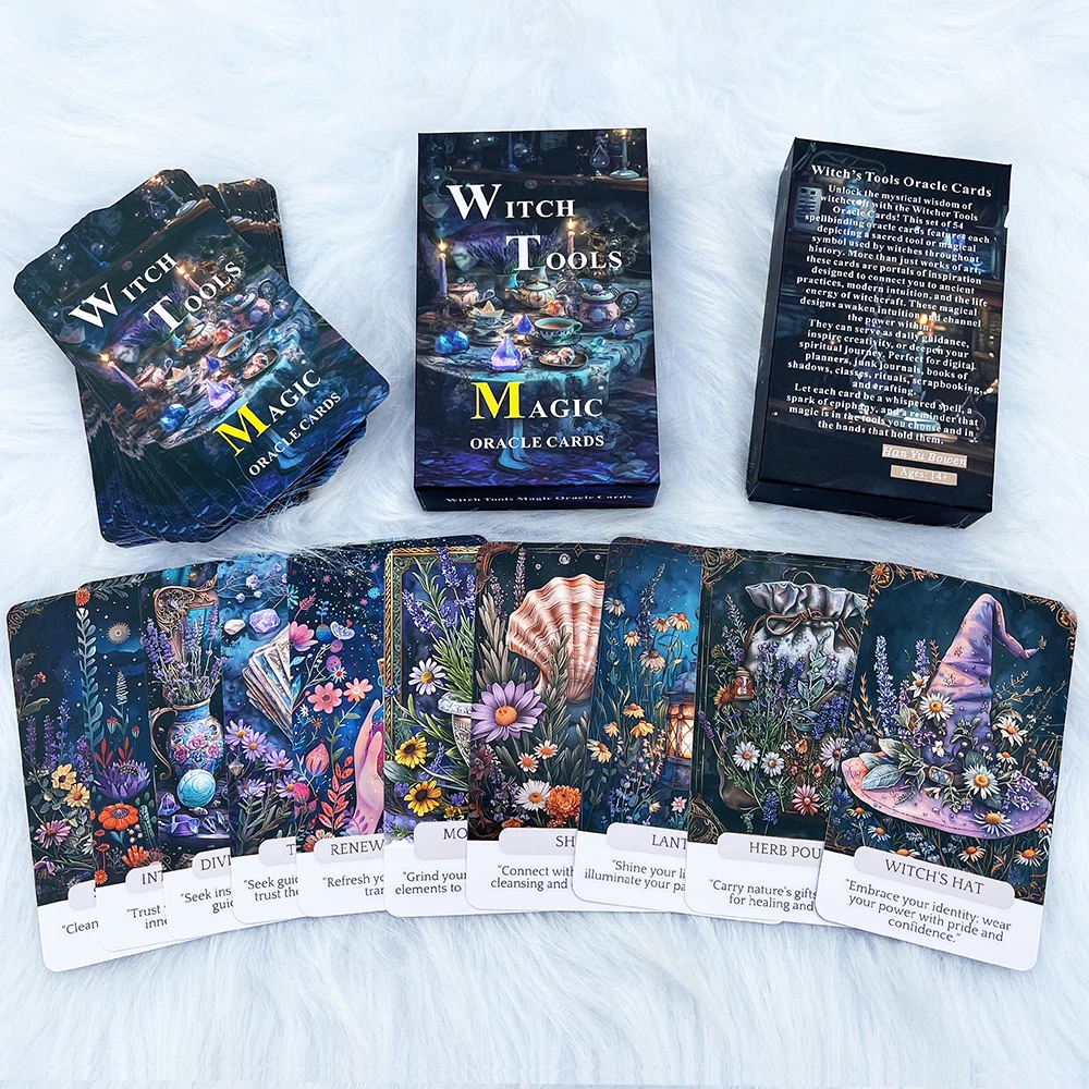 Witch Tools Magic Oracle Cards 54 Pcs, Mystical Guidance Deck for Beginners & Collectors, Witchy Aesthetic, Insightful Messages